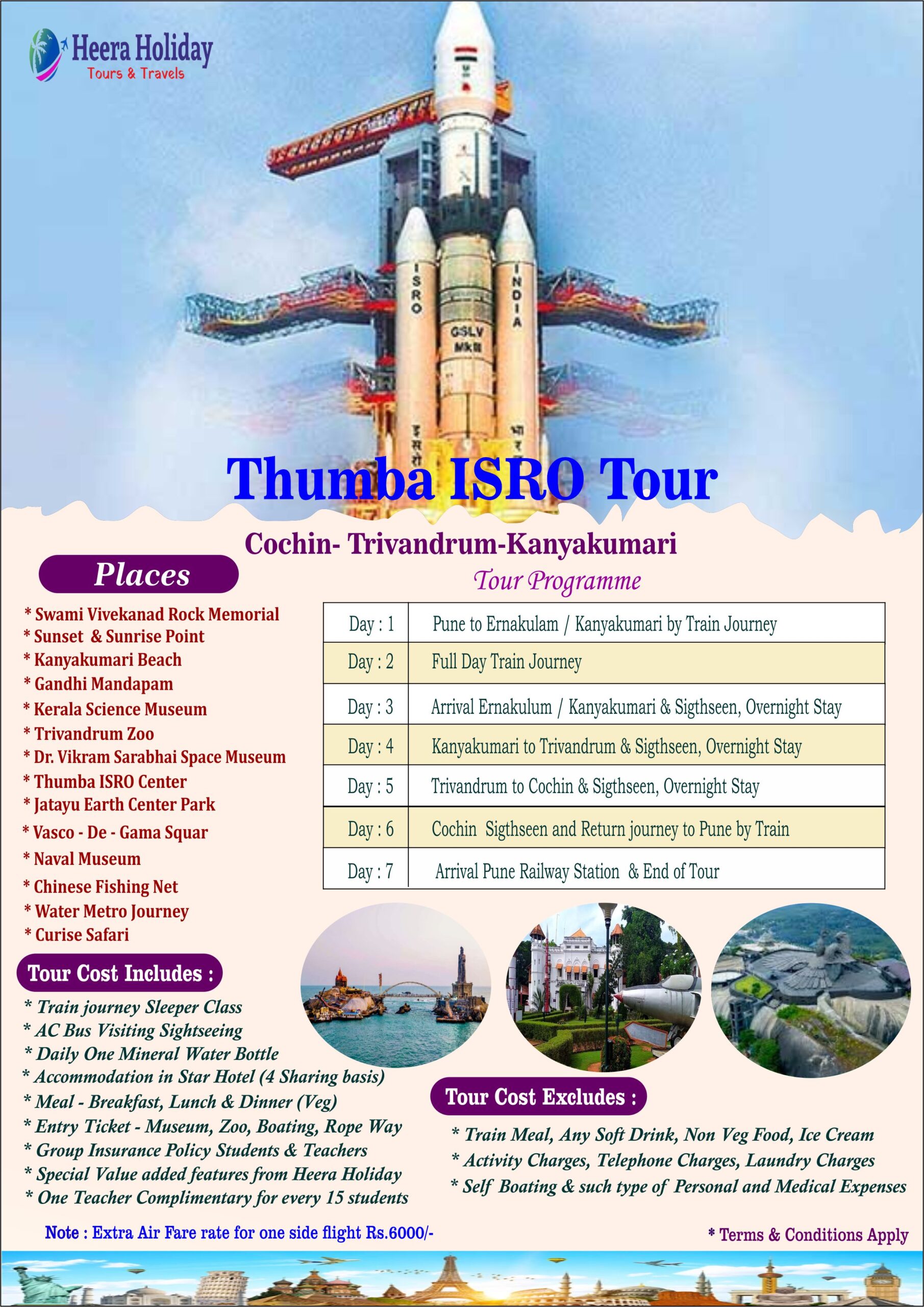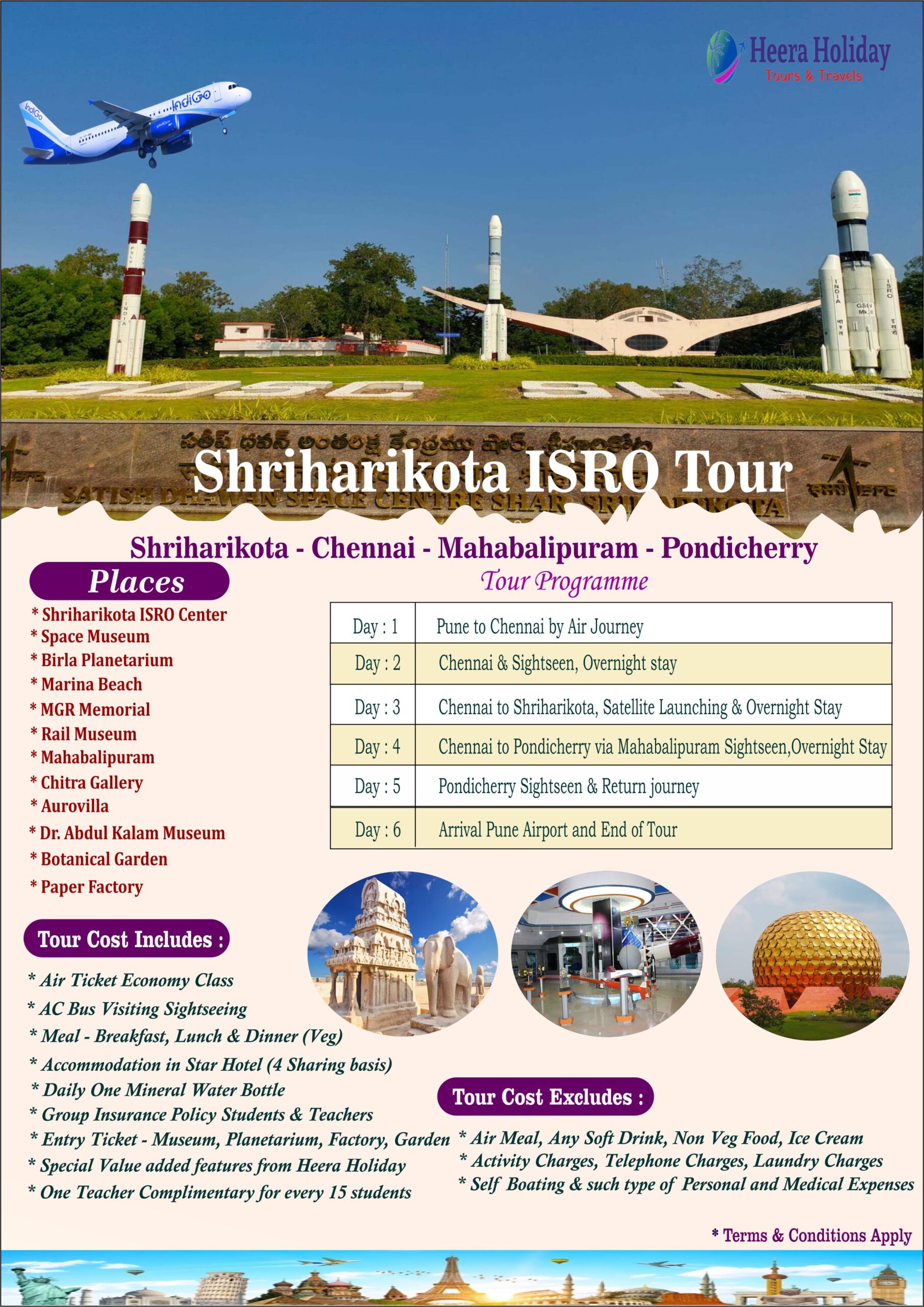 Heera Holiday Tours & Travels is a leading education tour operator, and providing a trip to ISRO can be an exciting and rewarding opportunity for students. ISRO, the National Aeronautics and Space Administration, is a leading organization in space exploration, and visiting their facilities can offer students an unparalleled experience to learn about science, technology, engineering, and mathematics (STEM) subjects.